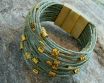 Ein modernes, originelles Armband mit Gold Elementen aus vergoldeten Silber der Probe 925,  Das Armband hat einen massiven, stabilen Magnetverschluss mit zusätzlichen Schloss.Es besteht aus mehreren Stahlbändern die mit resistenten Chiffon eng umwickelt wurden. Gewicht ca.56 g, Umfang ca 20cm, Handerzeugter und signierter Künstlerschmuck.Dazu passende Ohrringe und Collier vorhanden