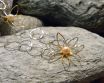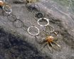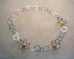 Anmutiges Ketten Collier aus 925 Silber und in 3 mit Feingold vergoldeten Blumen eingesetzten Perlen (24 Carat), Gewicht ca.16 g, gesamt Länge - ca 63 cm, Signierte Künstlerarbeit