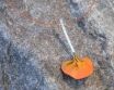 Ein anmutiges und originelles Collier mit einer orangen Blume die aus Stahl zur seidenartigen Stoff verarbeitet wurde. Aus 925 Silber und Stahl. Aufgehängt ist es an einem Kupfer Draht.
