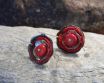 Aus 925 Silber, Halbedelstein und Stoff, Größe: Durchmesser ca 2,3 cm Gewicht ca 3,3 g (Eins) Länge mit Bügel ca 4 cm,