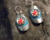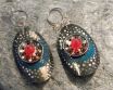 Aus 925 Hand gravierten Silber, einen roten Stein und Spitze, Größe: Durchmesser ca  3,8x3 cm Gewicht ca 3,4 g (Eins) Länge mit Bügel ca 5,5 cm