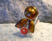 Großer Silber Ring 925 mit Bernstein und Koralle, Größe individuell verstellbar, Gewicht ca.17 g, Durchmesser des Steine ca 4cm, Handarbeit - Unikat