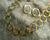 Ein elegantes Collier aus bearbeiteten, geschwärzten und vergoldeten Silber der Probe 925. Die Kette hat einen stabilen Magnetverschluß. Gewicht der Kette ca.33 g Länge ca.44cm, dazu passende, mittelgroße, sehr hübsche Ohrstecker deren Obere Teile beweglich sind.