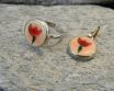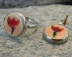 Ein schöner, romantischer Silberring mit handgemalten Tulpe aus gebrannter Keramik in 925 Silber eingefasst. Größe 16, Gewicht ca.4,5 g. Dazu passender Anhänger. Signierte Handarbeit