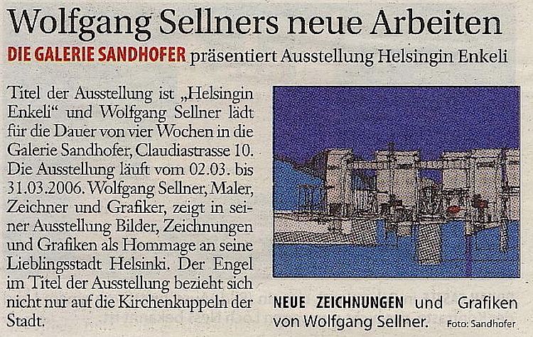 TIP - Wolfgang Seilners neue Arbeiten, DIE GALERIE SANDHOFER präsentiert Ausstellung Helsingin Enkeli