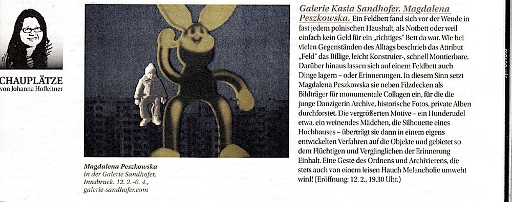 Presse Johanna Hofleitner - Galerie Sandhofer - Paulina Sadowska