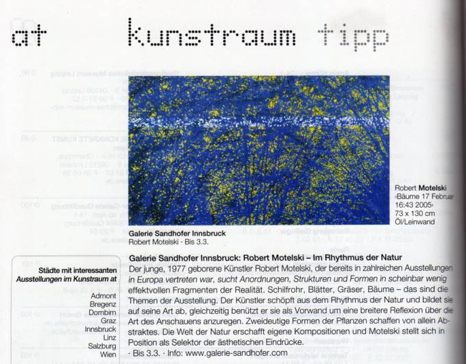 Kunsttermine - Kunstraum Tip - Galerie Sandhofer Innsbruck: Robert Motelski - Im Rhythmus der Natur