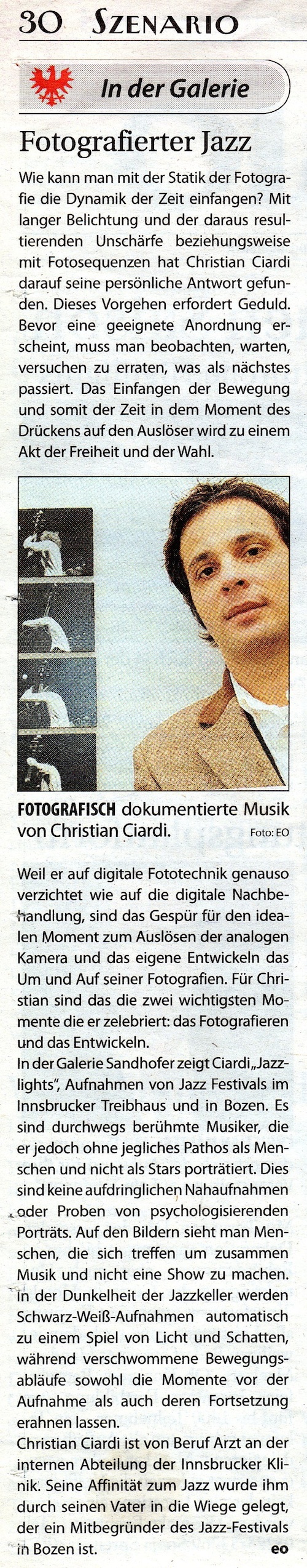 Tiroler Woche, W.Oberhuber - Fotografierter Jazz - Christian Ciardi