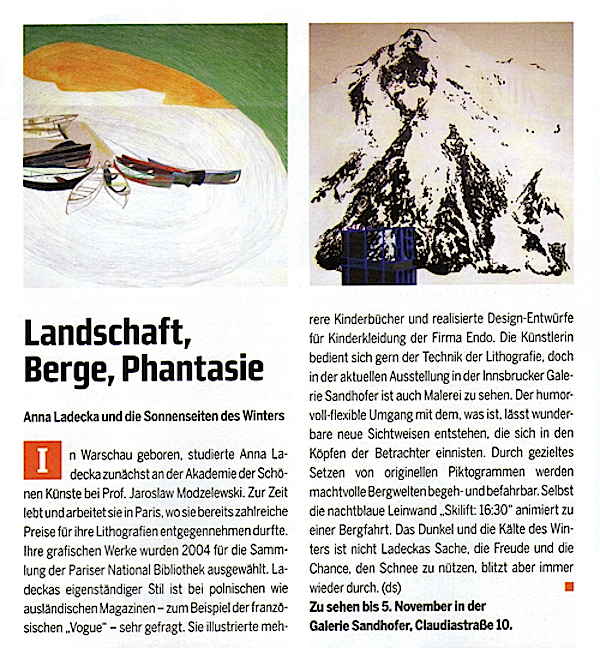 6020 Stadtmagazin - LANDSCHAFT, BERGE, PHANTASIE, Anna Ladecka und die Sonnenseiten des Winters